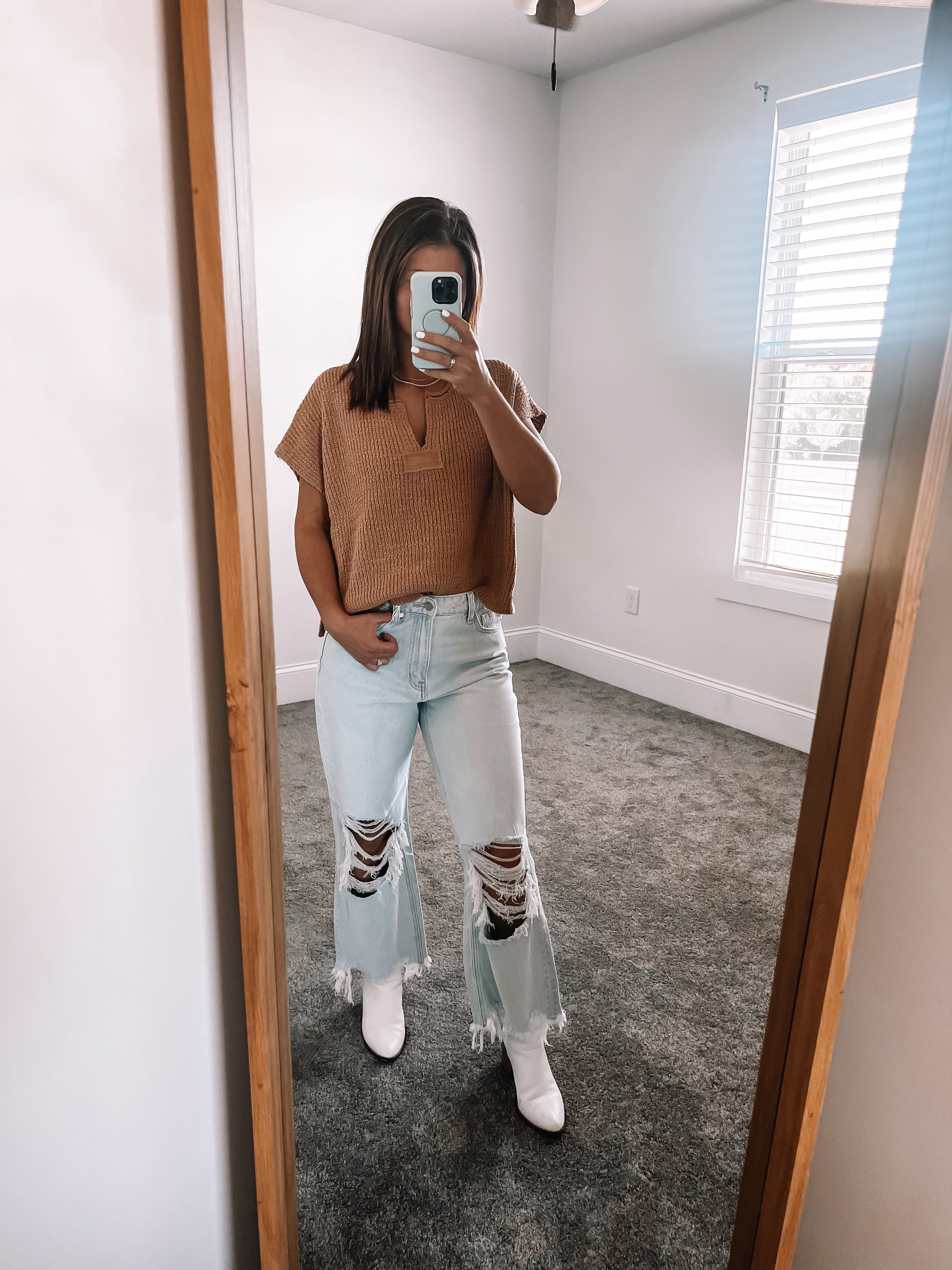 Our 90's Vintage Flares are a true non stretch denim with a super high rise. waist, distressed detail, raw hem & cropped length. Stick to true size but if in between, size up.