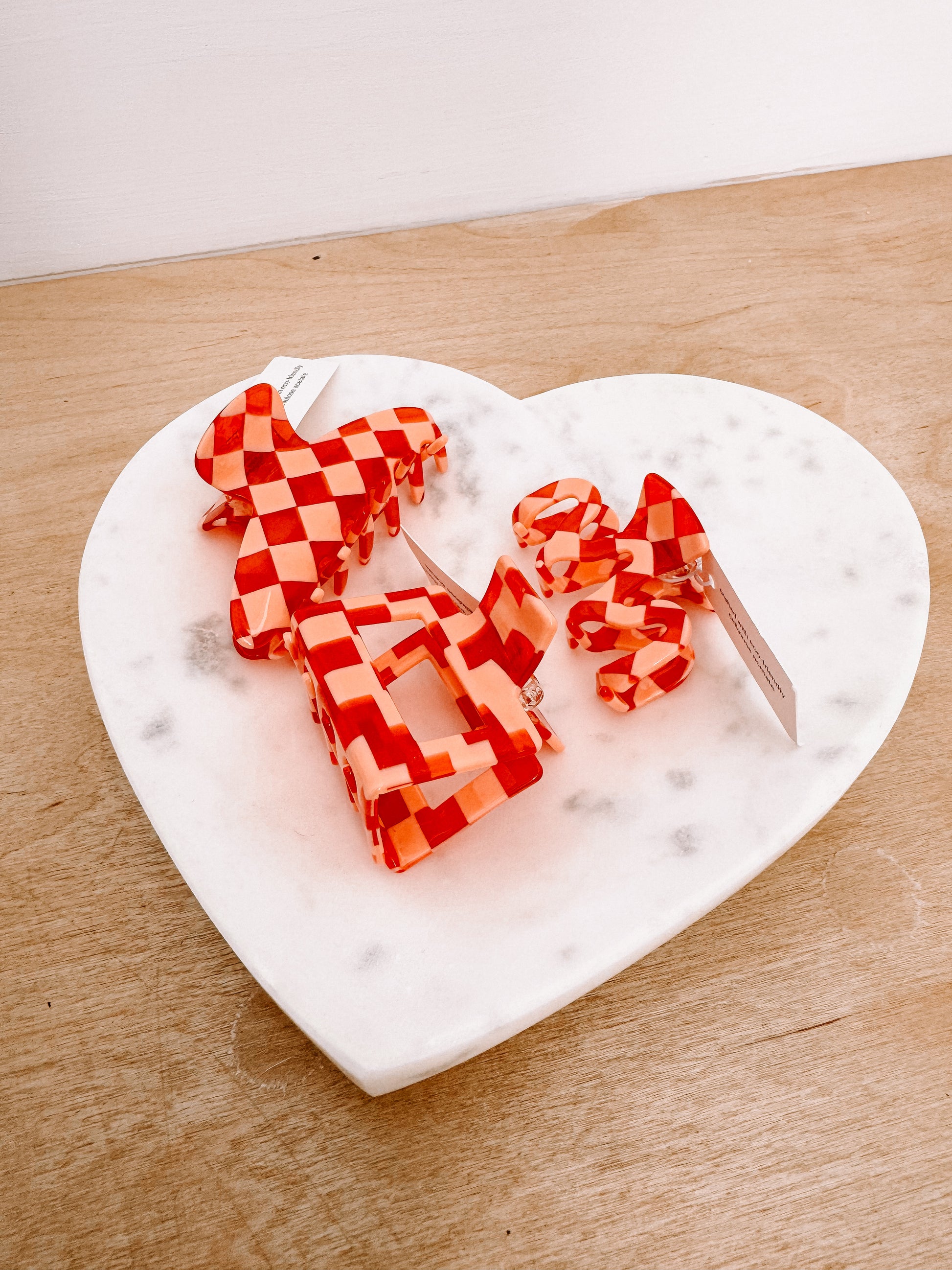 our checkmate claw clips are 2/3inch, medium in size. a fun translucent red and pink, available in 3 different styles.