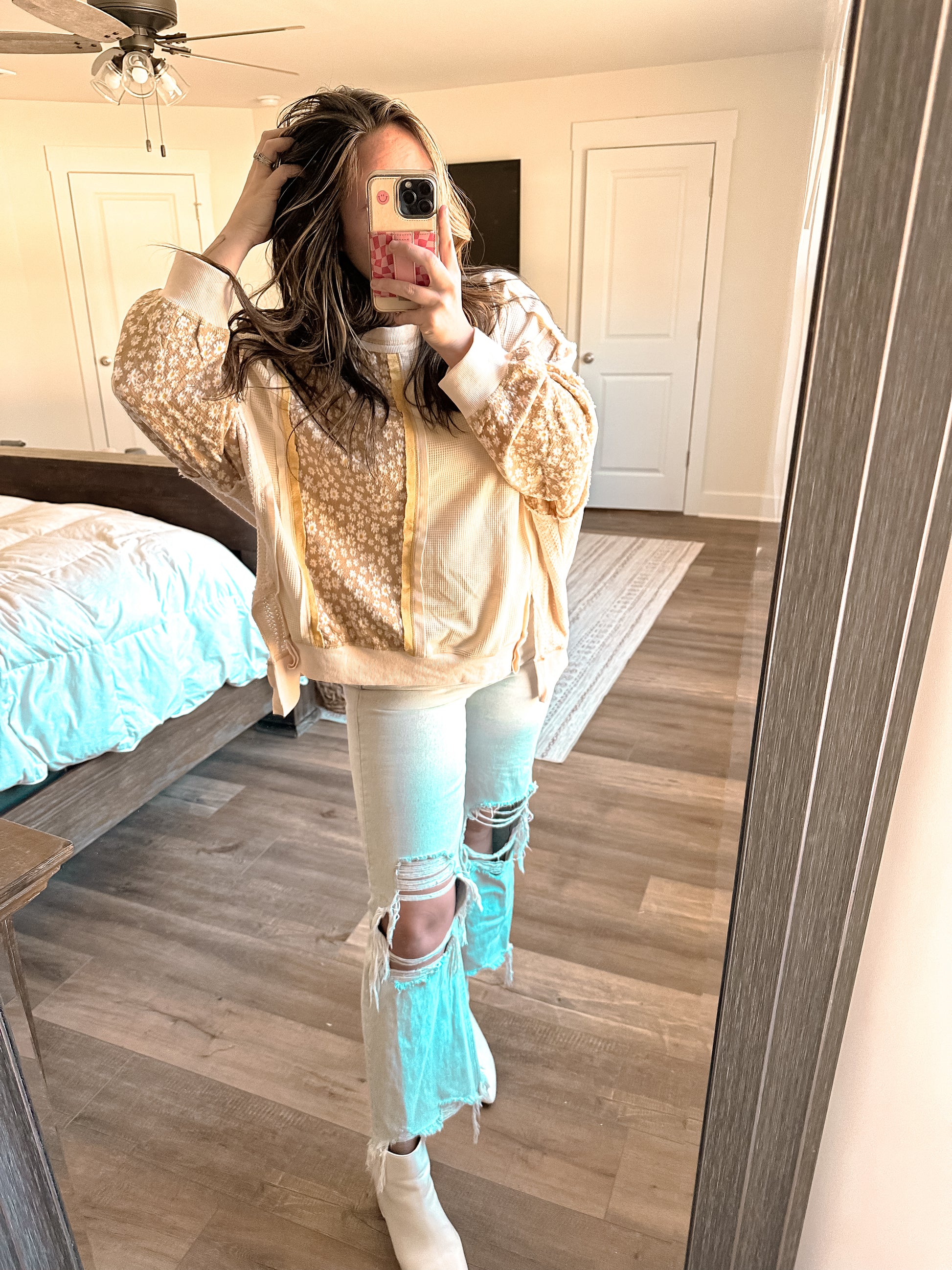 Our Ellie Top is an oversized round neck balloon sleeve top with the prettiest neutral tones. loose, oversized fit. Perfect paired with jeans or leggings.
