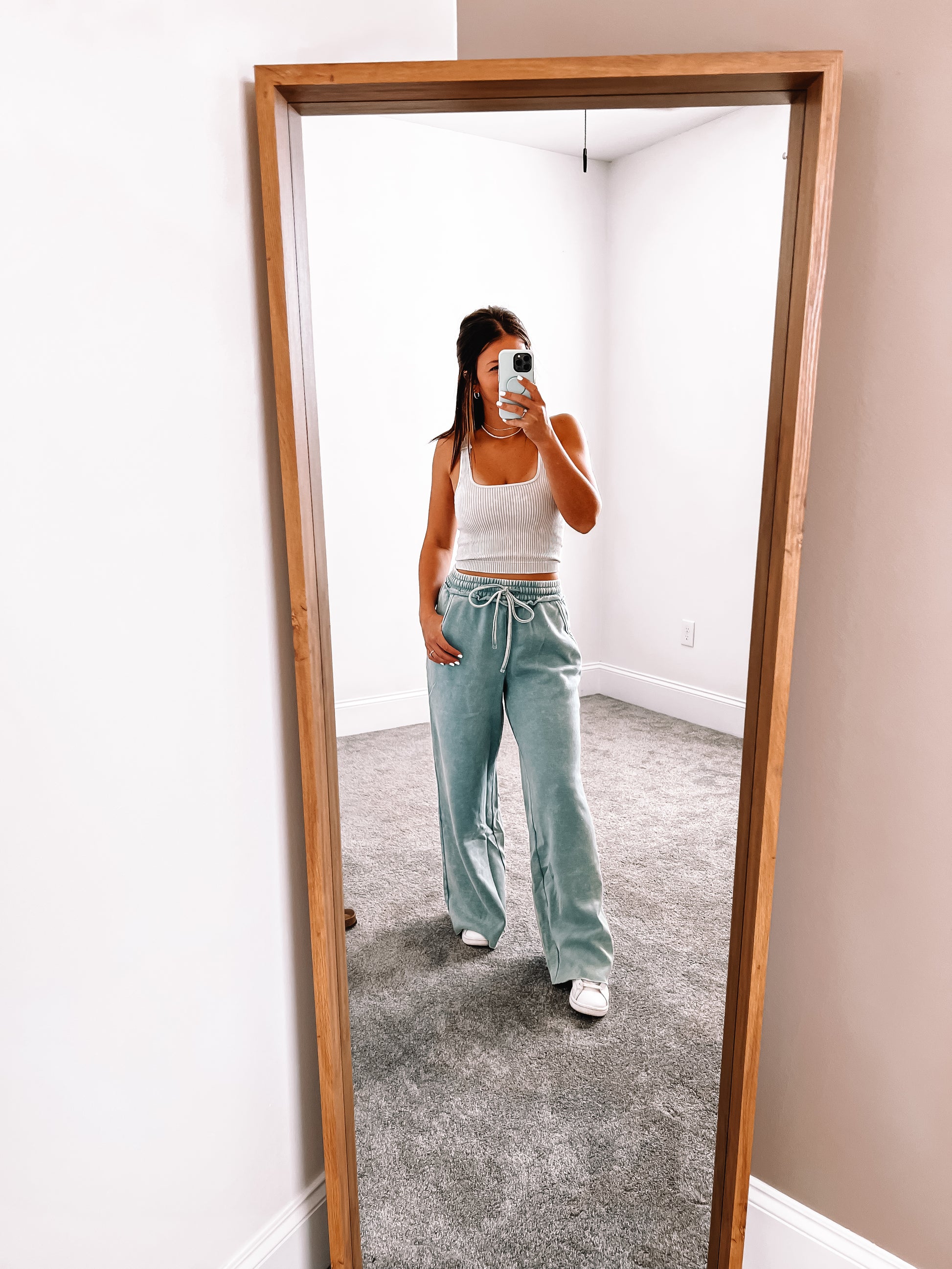 Experience ultimate comfort and style with our Everyday Sweats. Made for everyday wear, these loungewear pants feature an elastic waistband with drawstring for a customizable fit and convenient pockets. Perfect for any casual occasion, these sweats will quickly become a wardrobe staple. Wearing a size small.