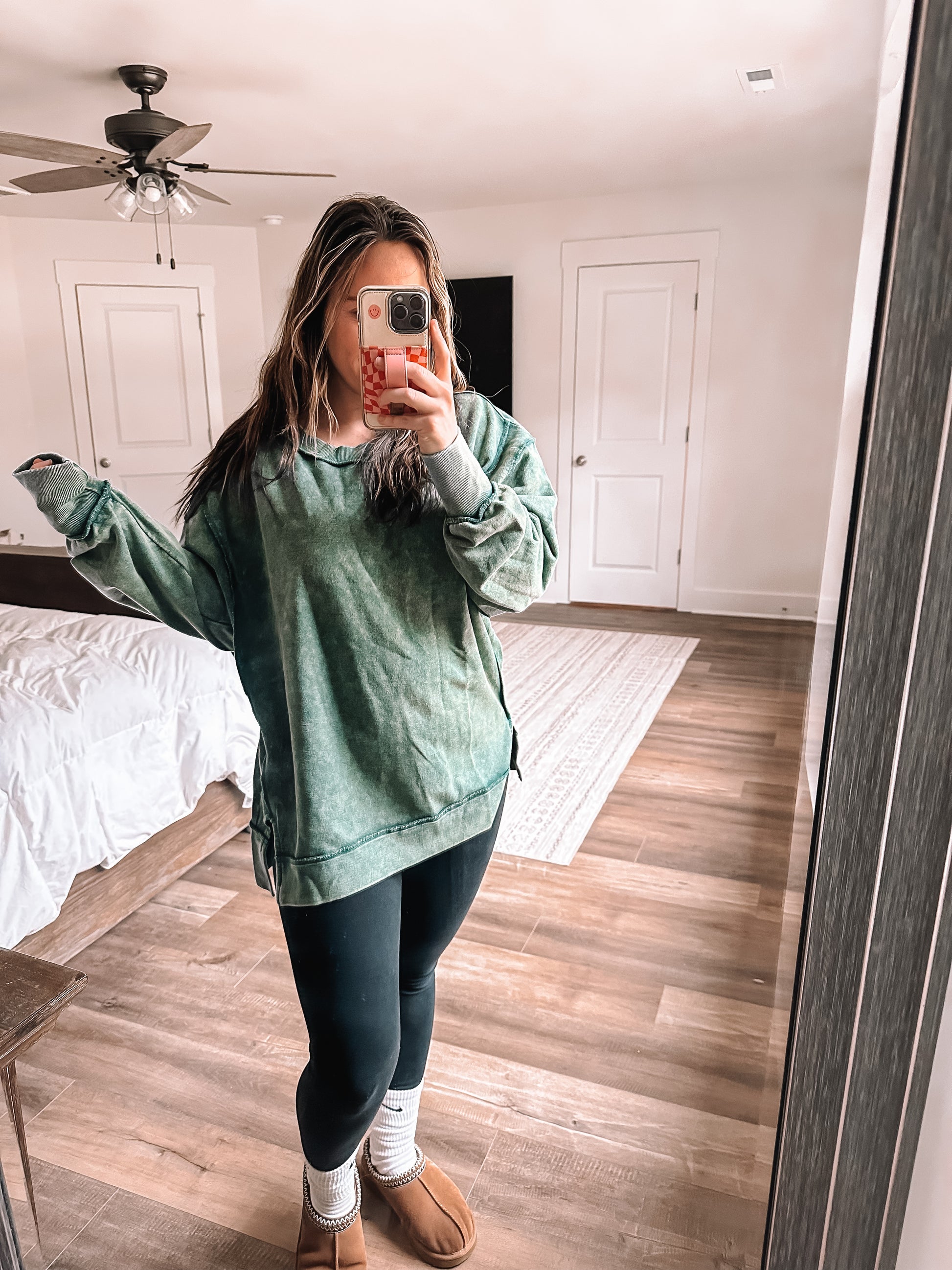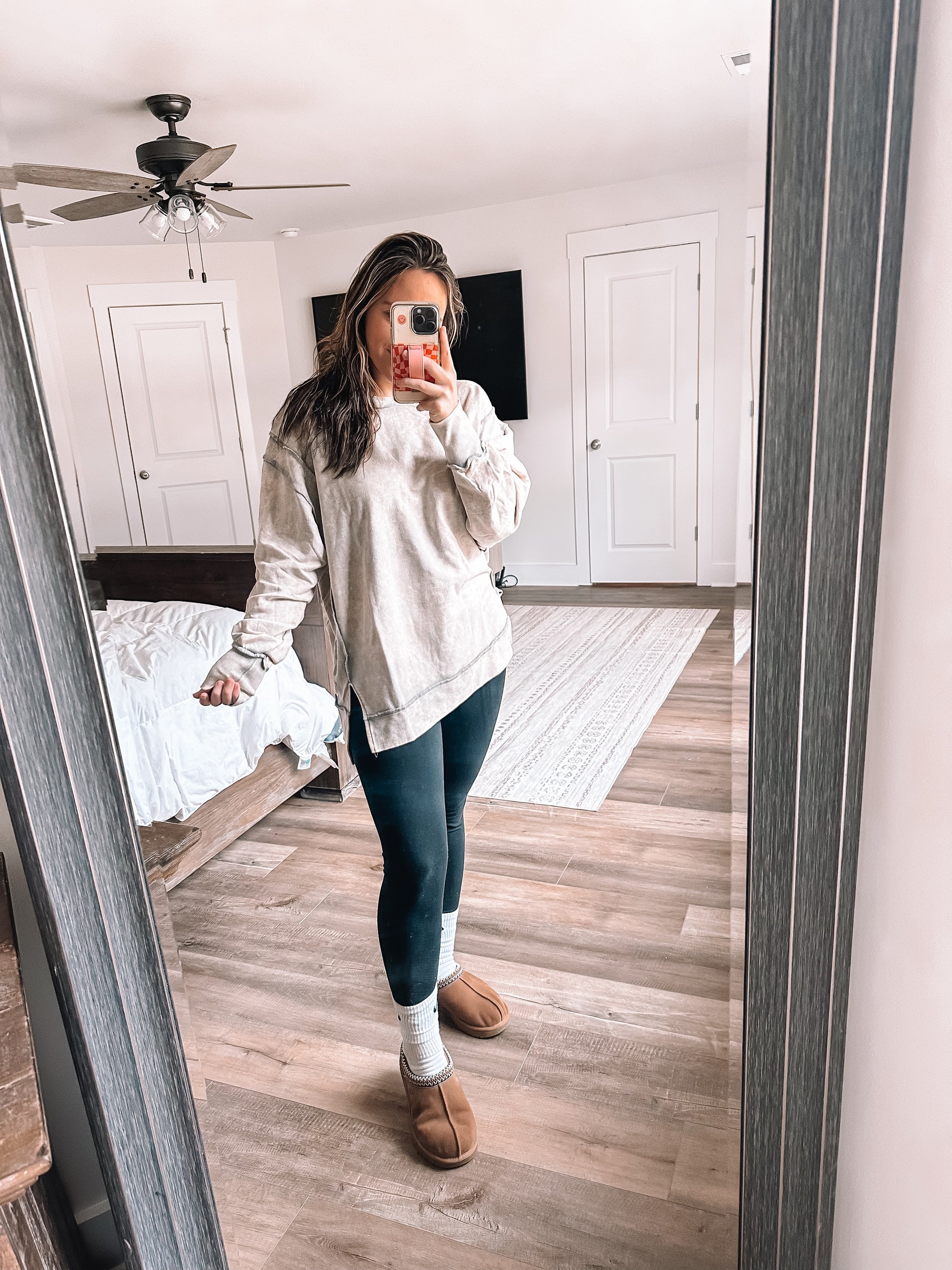 Our Everyday Sweatshirt is a french terry, exposed seam sweatshirt with a hi low hem and perfect paired with jeans or leggings with a loose oversized fit. Available in 3 great neutrals!