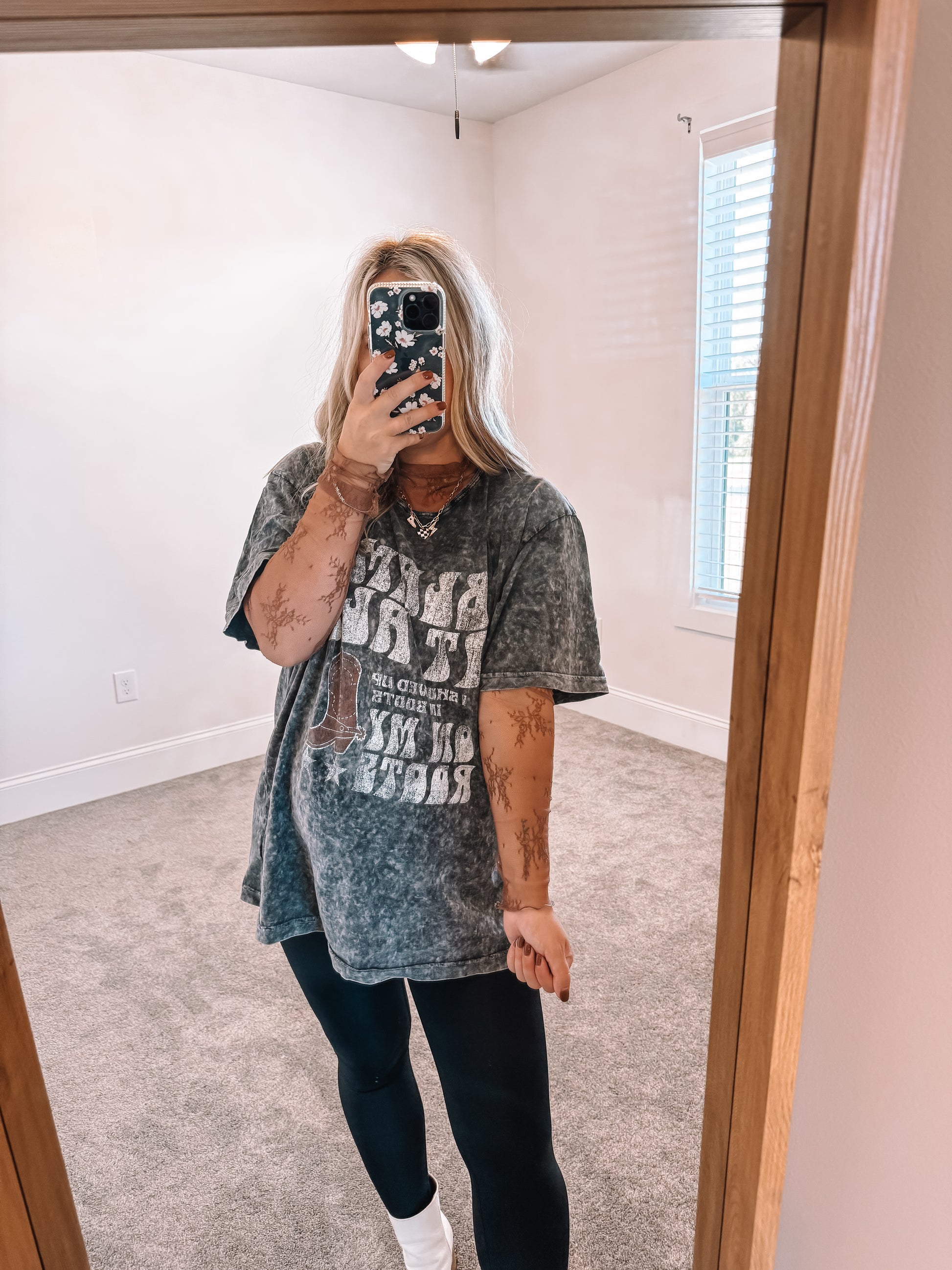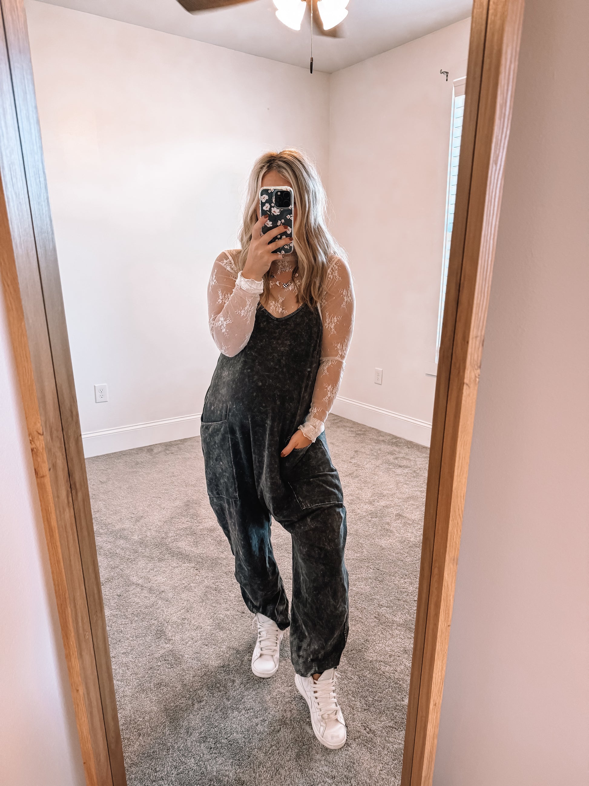 This lace layering top is the perfect addition to any wardrobe. The delicate lace adds a touch of elegance while the neutral color allows for easy pairing. Use as a layering piece for added dimension to any outfit. Versatile and timeless, a must have. Wearing a size small.