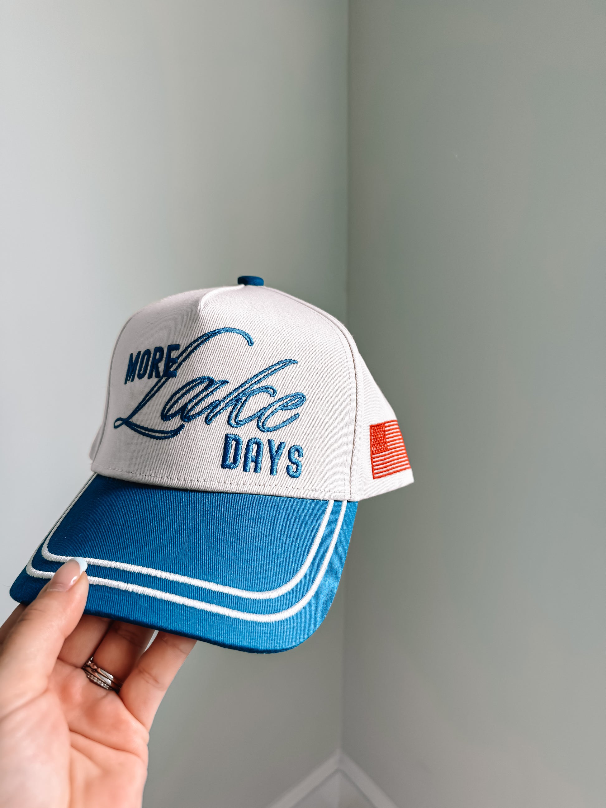 Royal blue vintage adjustable snapback with embroidery on the side and stripes on the bill. Another summer go to!