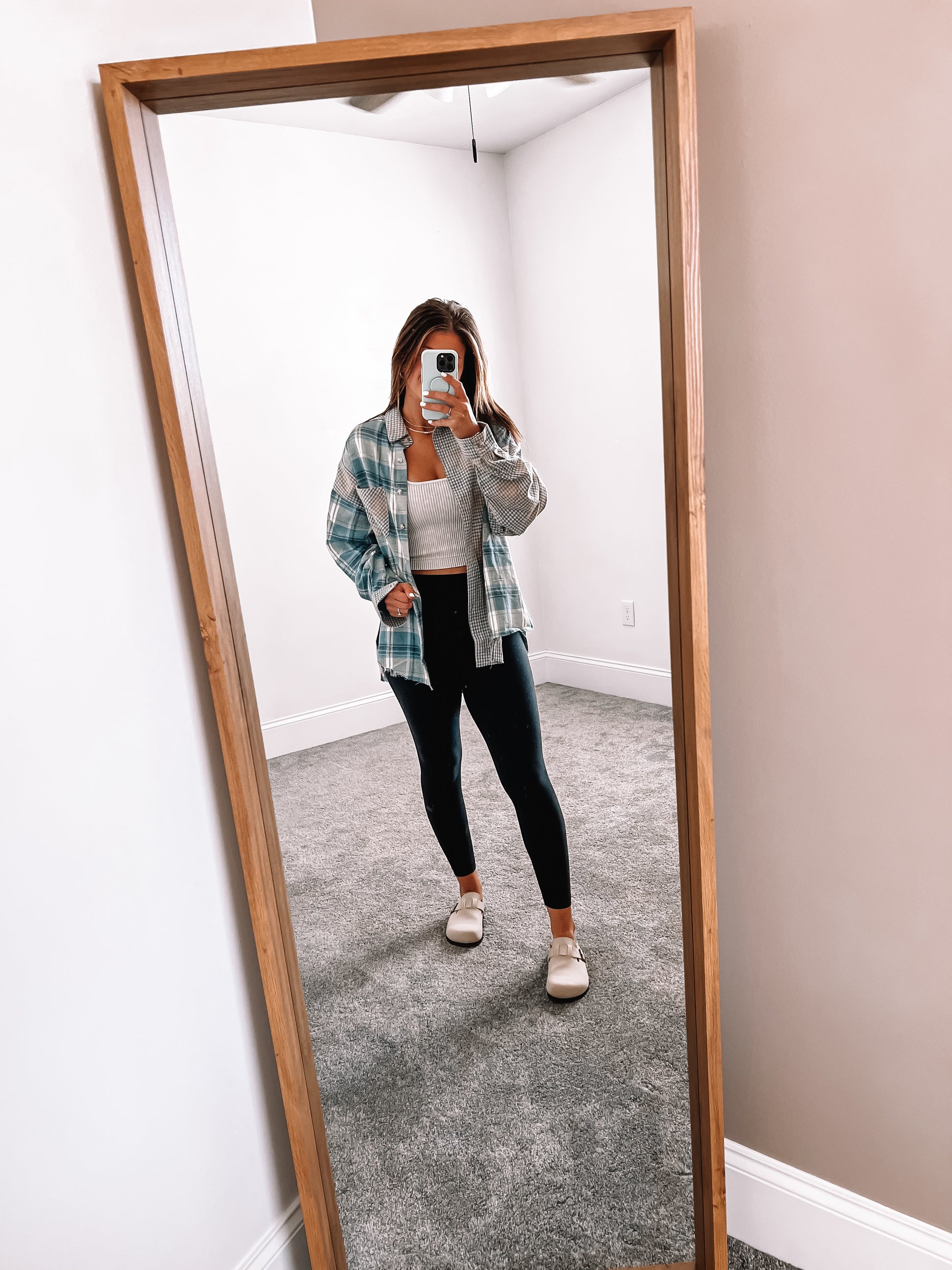 Our Misty Flannel is made with light-weight material, plaid detailing and functional buttons. this flannel is perfect for all-day wear and offers effortless style and comfort. Oversized fit, wearing a size small.