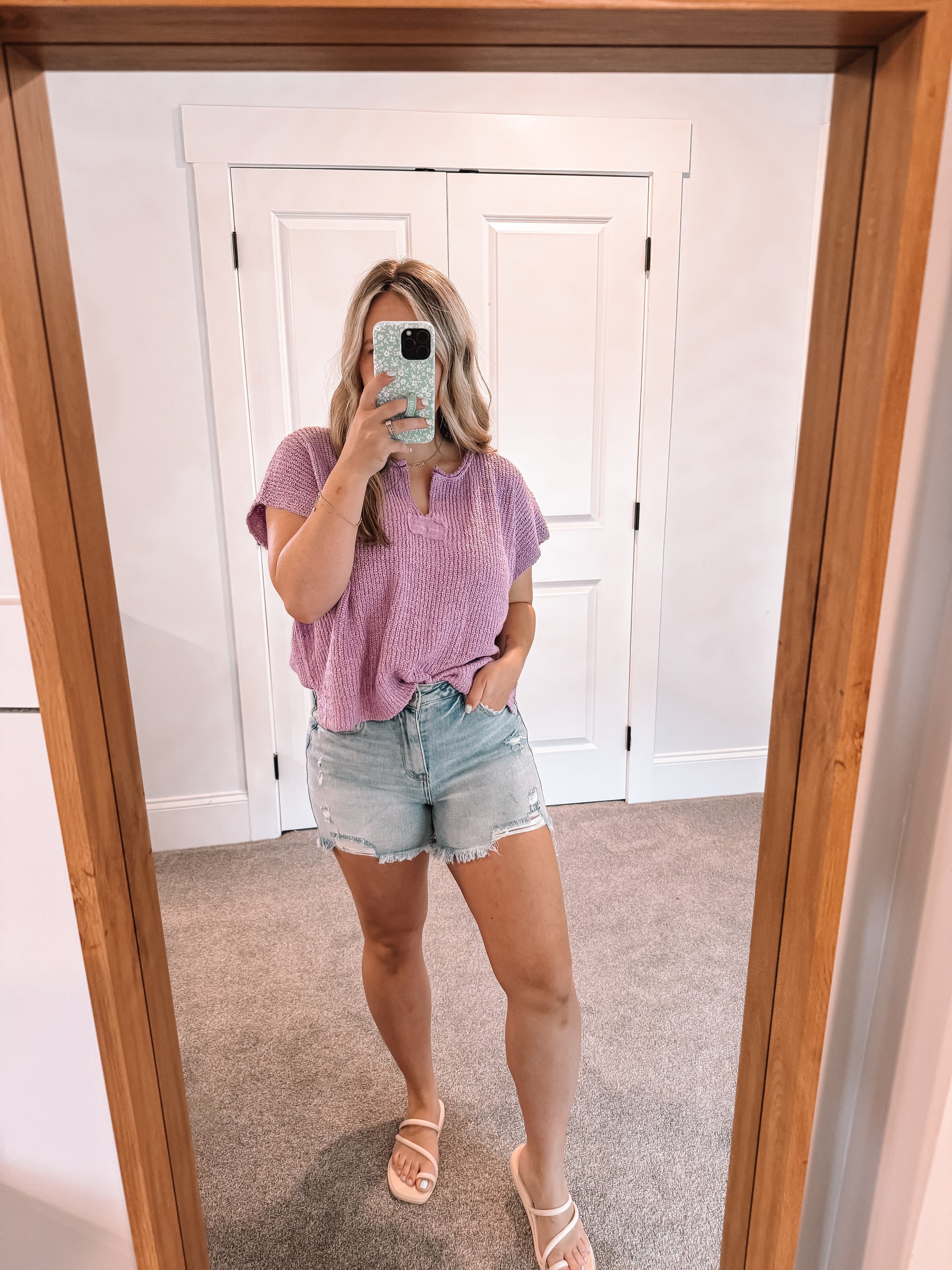 Our Reina Denim Shorts are our go to favorite Risen brand in a light wash high rise. Great stretch and over all comfort. True to size fit but if in between size down. 2% spandex.