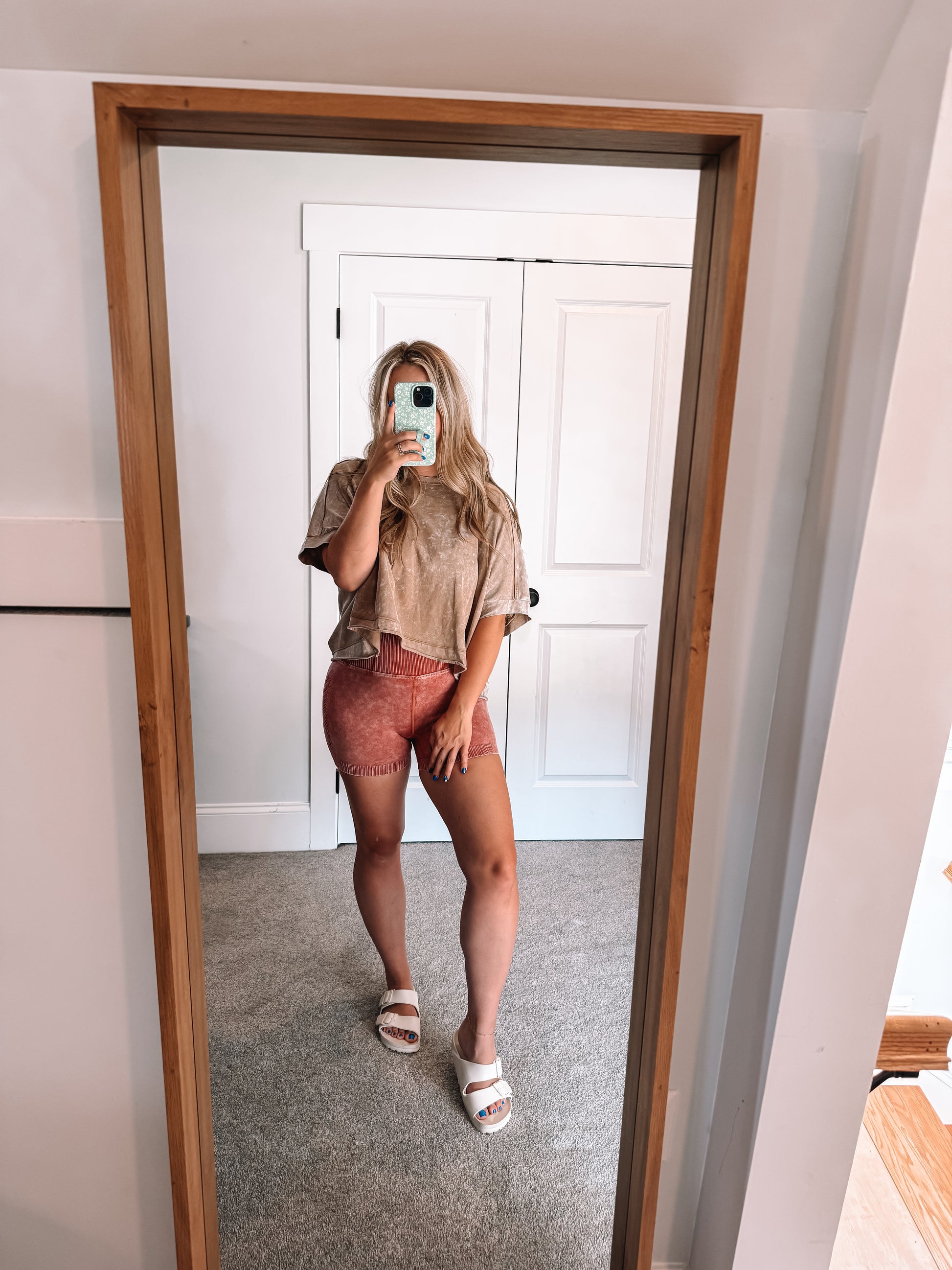 Our seamless high waisted ribbed bikers are going to be a staple this summer. Eyelet detailing with ribbed hem and waistband. Model wearing a S/M - lots of stretch.