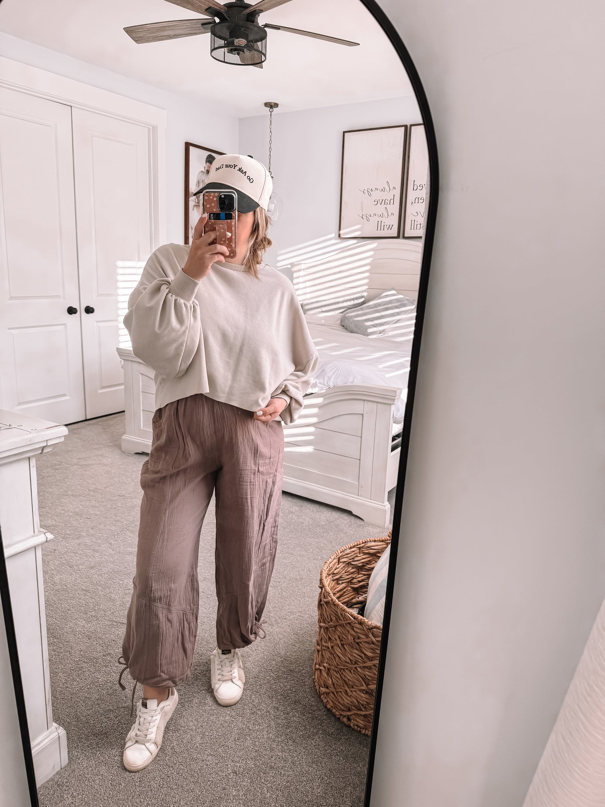 our Sandy Jogger harem drawstring pants offer a perfect blend of comfort and style. These pants feature a relaxed fit with a dropped crotch, combining the casual feel of joggers with the loose and roomy design of harem pants. The drawstring waist allows for a customizable fit, ensuring comfort throughout the day. With tapered legs and elasticized cuffs, these pants provide a modern and sporty silhouette. The drawstring detail not only adds functionality but also contributes to the overall style, making these pants versatile for both casual and athleisure wear. True to size, loose fit.