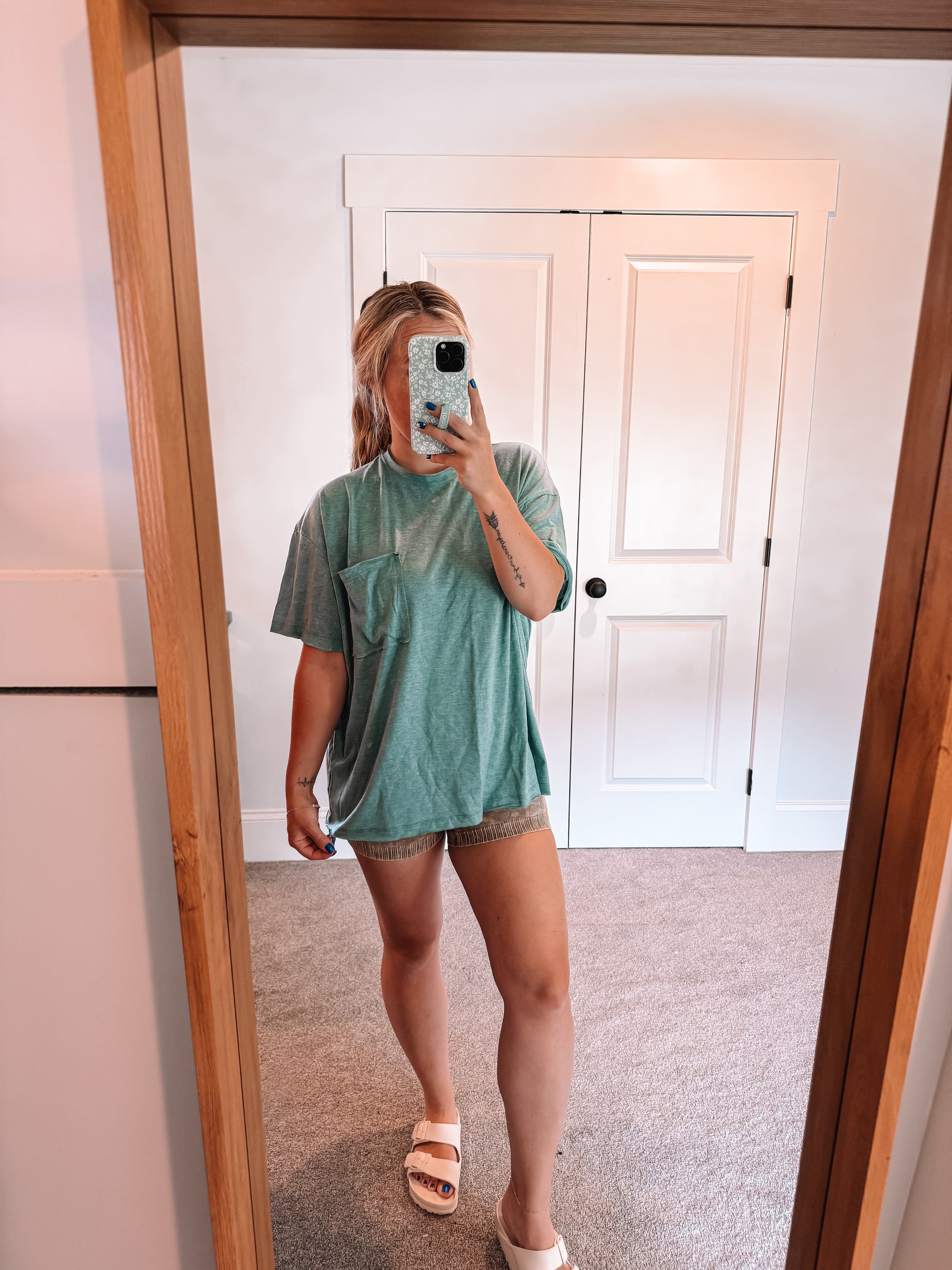 A go to staple for your wardrobe. Easy to dress up or down, Our slouchy pocket tee is a great oversized fit with that front pocket detail. Wearing a size S/M.