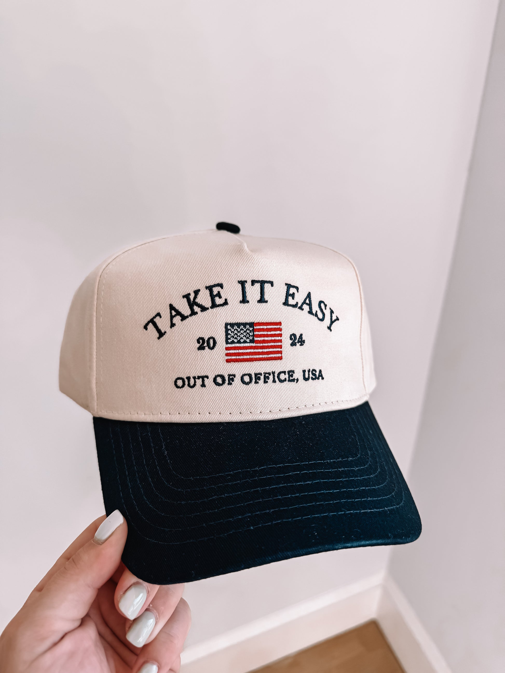 Our Take It Easy Trucker in navy is the perfect neutral hat - throw it on for your favorite concert fit or plan ahead to add it as an accessory to your memorial day/FOJ plans. Also perfect for everyday wear. Adjustable snapback.