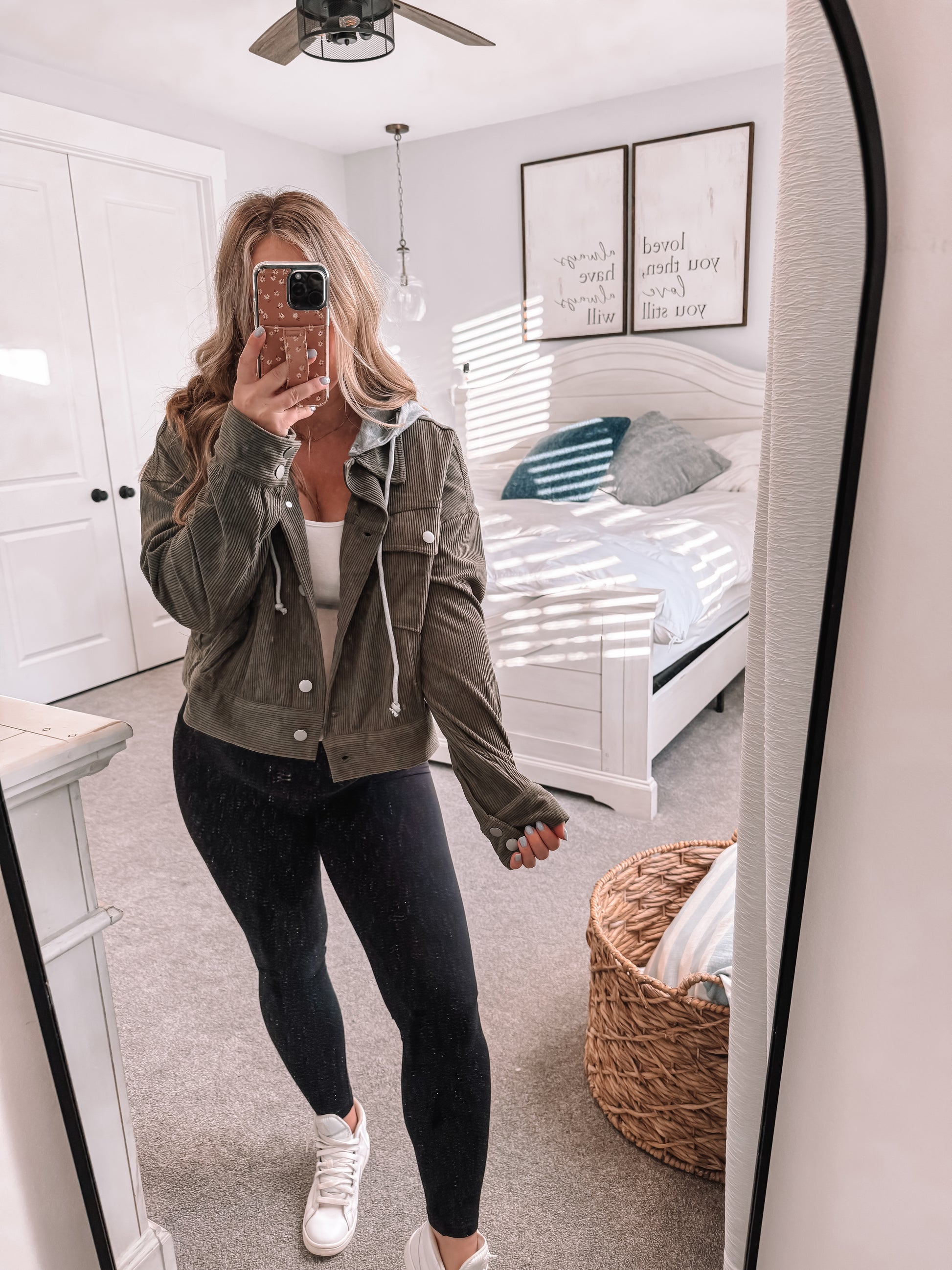 Our Wrenley Corduroy Jacket is a closet staple that features a functional hood and buttons, perfect to dress up or down. Its light olive in color and has a soft loose fit to keep you comfortable. True to size.